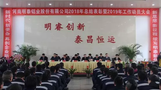 河南明泰鋁業(yè)股份有限公司2018年度總結(jié)表彰暨2019年工作動(dòng)員大會(huì)于2019年1月11日上午在公司禮堂順利召開(kāi),鞏義市產(chǎn)業(yè)集聚區(qū)管委會(huì)副主任、回郭鎮(zhèn)黨委書(shū)記王躍舉,公司董事長(zhǎng)馬廷義,副董事長(zhǎng)化新民、杜有東,總經(jīng)理劉杰及500余名干部職工參加會(huì)議。