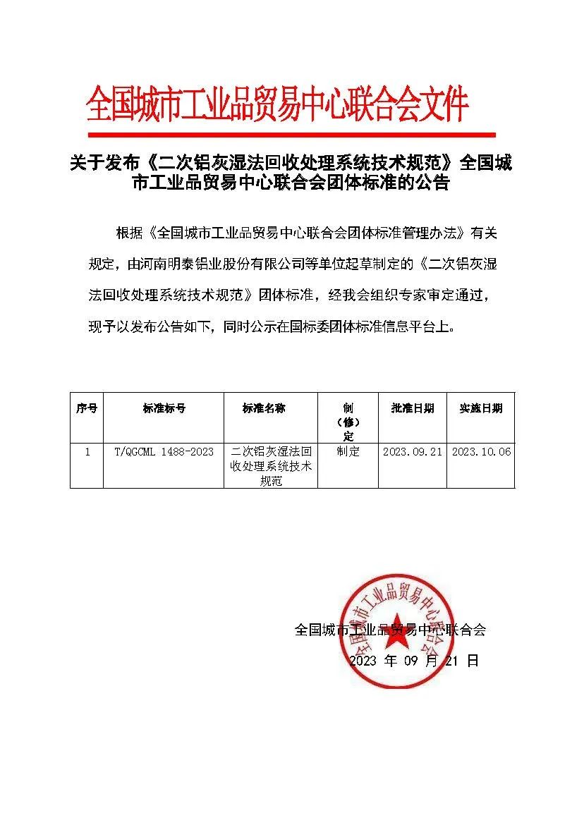 近日,由河南明泰鋁業(yè)股份有限公司牽頭編制的《二次鋁灰濕法回收處理系統(tǒng)技術規(guī)范》、《食品容器用再生鋁合金箔》2項團體標準順利通過專家評定,獲得批準發(fā)布。這是公司以技術難點突破為手段,破解行業(yè)共性問題、推進鋁加工行業(yè)質(zhì)量提升建設所結(jié)出的最新碩果。